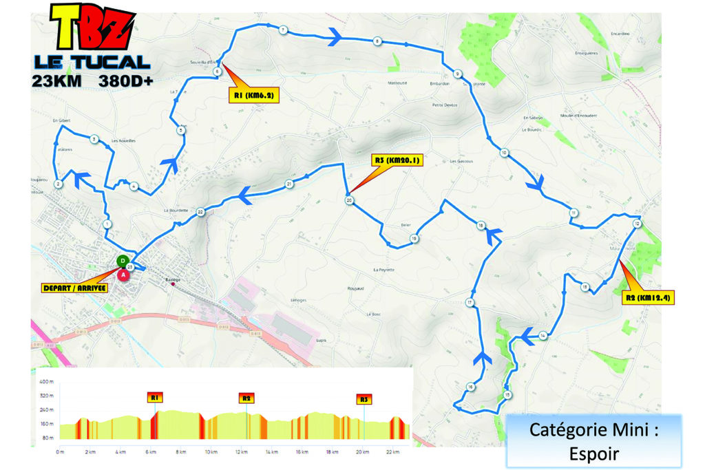 - Le TUCAL (23 km) : ravitaillements aux km 6,2, 12,4 et 20