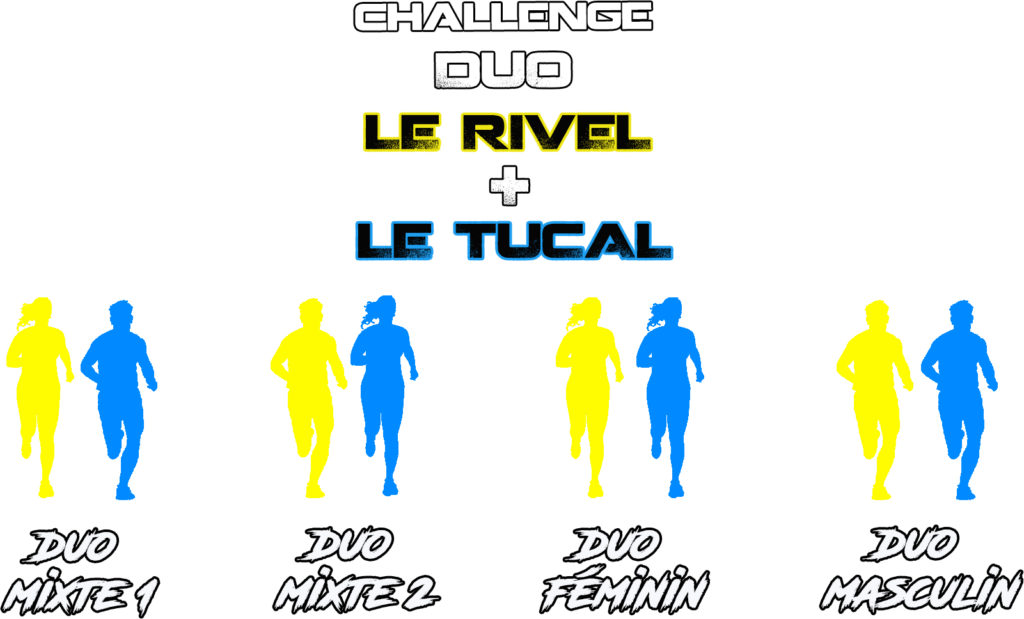 Le challenge DUO est une inscription de 2 personnes aux courses LE RIVEL de 15 km et LE TUCAL de 23 km avec une option « Challenge DUO ».